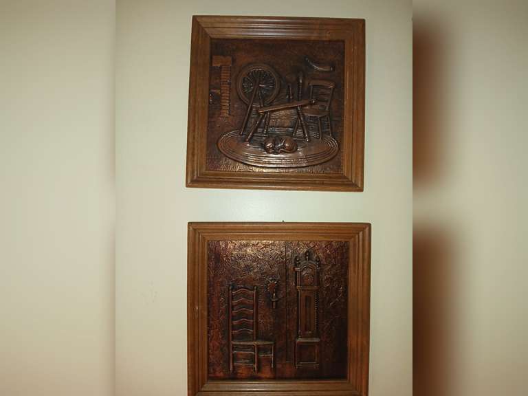 LOT 109 - Very unique Colonial 3-D leather like artwork. 12"x12"
