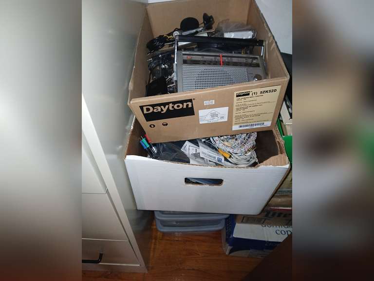 LOT 117 - Assorted radios, hardware, lot wire, disc holders, remotes tape, more