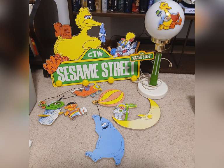 LOT 58 - Nice assortment of Sesame Street child's table lamp, coat hanger and other figurines