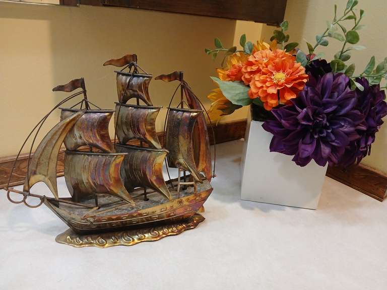 LOT 124 - Tin ship, flower vase, assorted art and Audubon bird clock. Bath 1