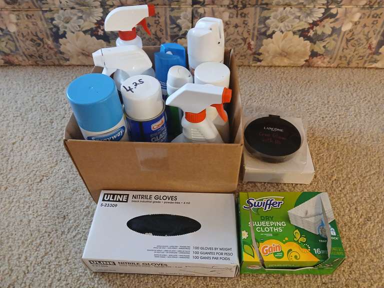 LOT 96 - Assorted home cleaners, swifter refills, gloves
