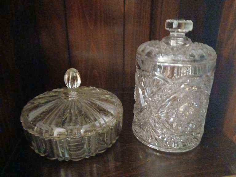 LOT 103 - Star of David lead crystal cut glass covered cannister (8"H) & candy dish