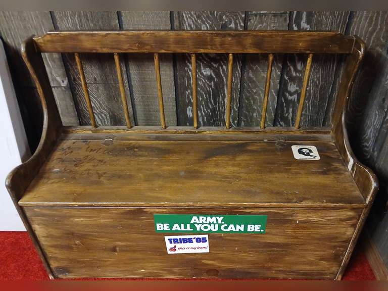 LOT 131 - Flip top spindle back toy chest, 41" H