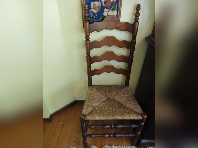 LOT 159 - Pair Solid wood ladder back Victorian cane stitched chairs