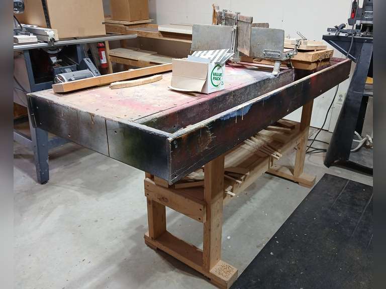 LOT 176 - Wooden shop table 64w x 25d x 34h. No contents included