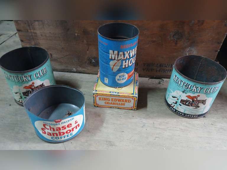 LOT 197 - Assortment of Kentucky Club tin cans, Chase and Sanborn coffee and Maxwell tin, king Edward cigar