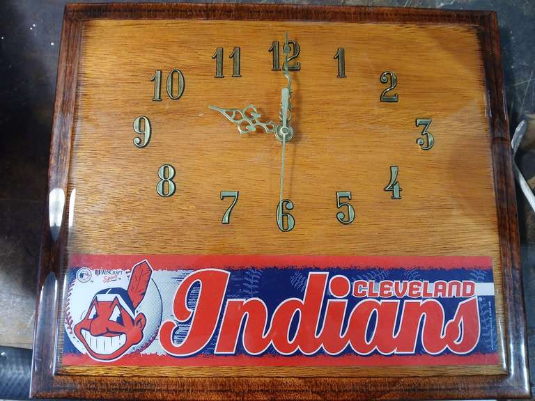 LOT 217 - Cleveland Indians wood stained battery operated wall clock
