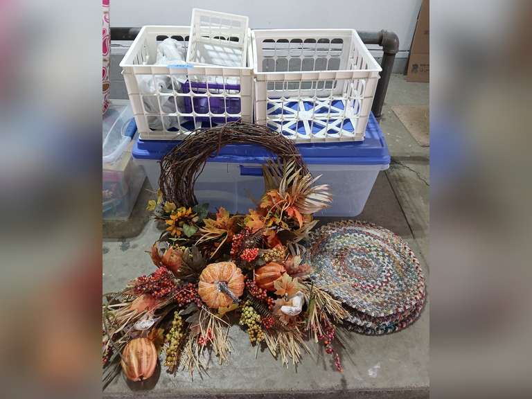 LOT 229 - Fall wreaths, storage cubes (tote not included)