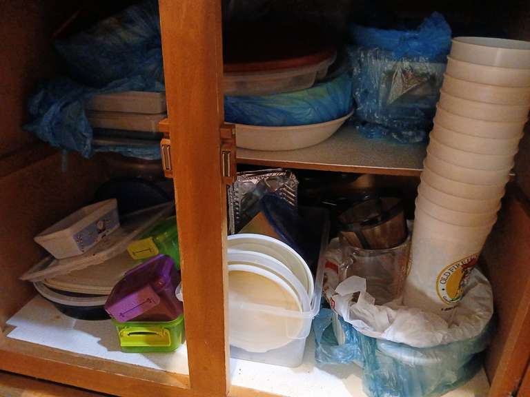 LOT 176 - Lot tupperware, plastic cups, measuring cups & more kitchen utensils