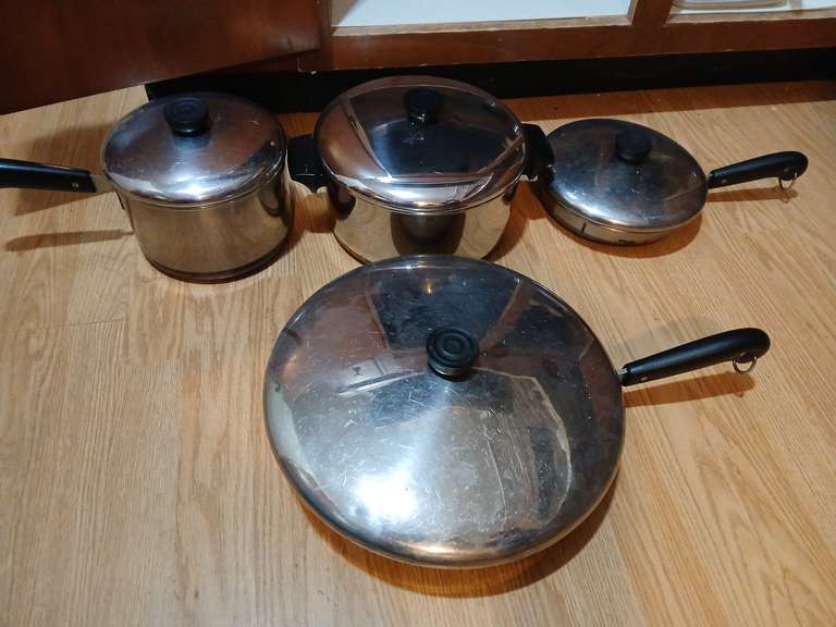 LOT 184 - Revereware copper bottom pots & pans with lids