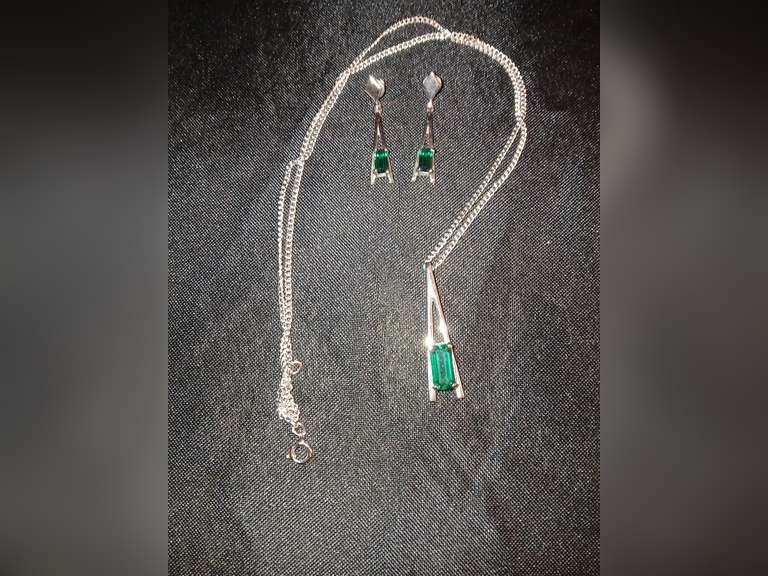 LOT 204 - Vintage Avon emerald silvertone necklace and clip on earring set