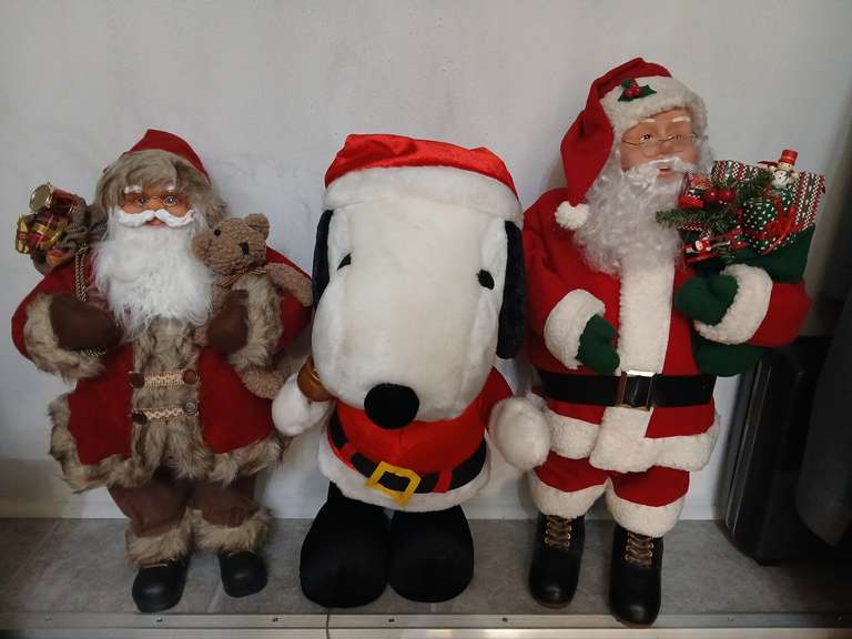 LOT 205 - (2) Santa figurines and plush Snoopy, 24" H
