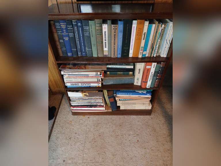 LOT 216 - Assortment of Transistor, engineering manuals, 1980 civic, fuel and emission manuals on 3ft sauder shelf