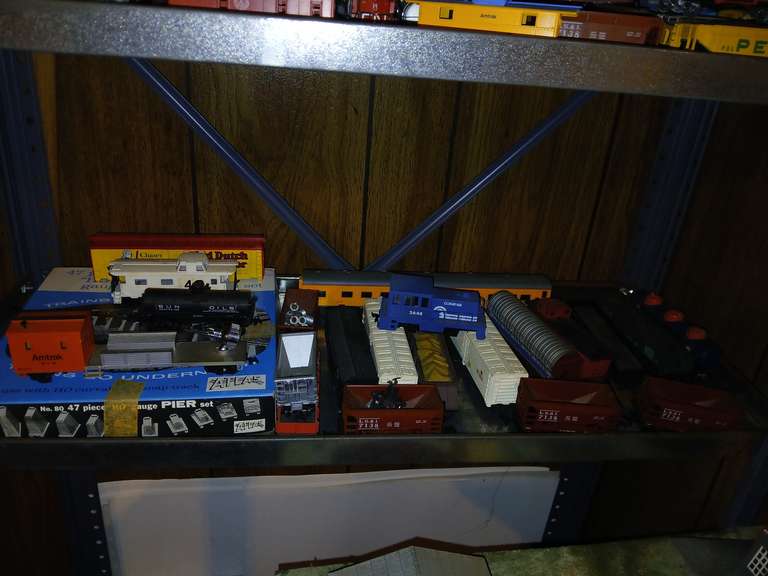 LOT 252 - HO train cars Conrail 2648 engine, box cars, tanker, coal cars, 48 caboose. Pier set