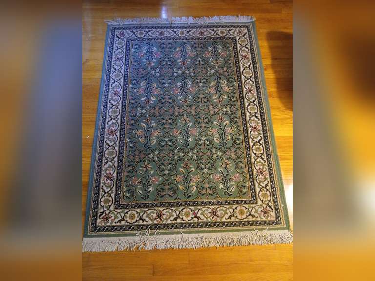 LOT 52 - Nain design Teal & Pink floral design area rug. 63" x 47"