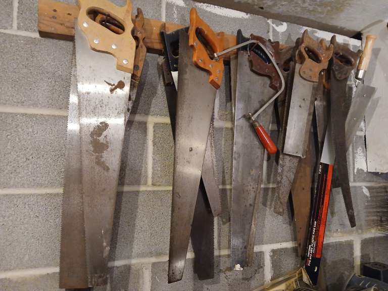 LOT 326 - Large group of hand saws and craftsman plastic pipe saw