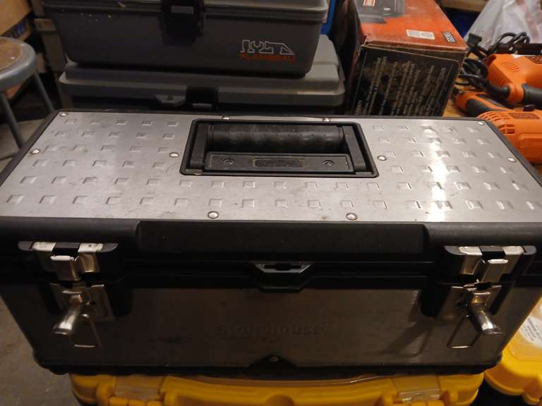 LOT 333 - Storehouse ss tool box with nice assortment of tools, sockets wrenches, hex keys, speed lok connectors, flashlights and more tools