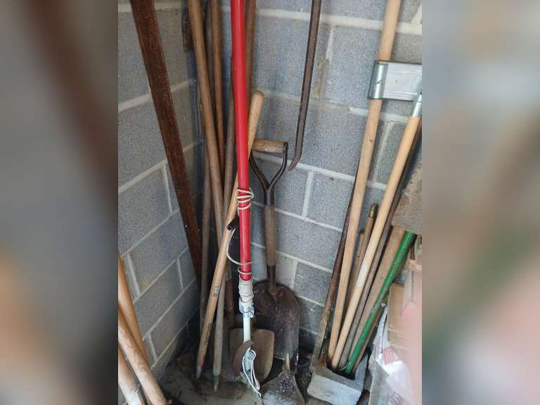 LOT 368 - Craftsman pick, tree pole trimmer, flat shovels, rake