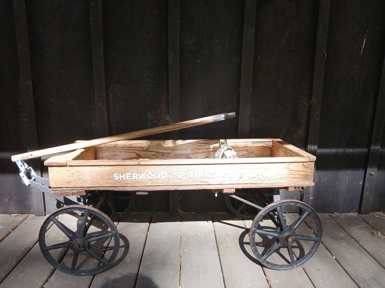 LOT 403 - Vintage Sherwood Springs Coaster pull behind wagon with cast iron wheels. 36"w
