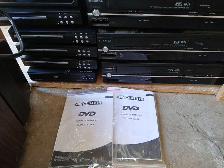 LOT 393 - (4) Toshiba vhs/dvd players and (4) Curtis dvd players, Magnavox TV converter, calculator