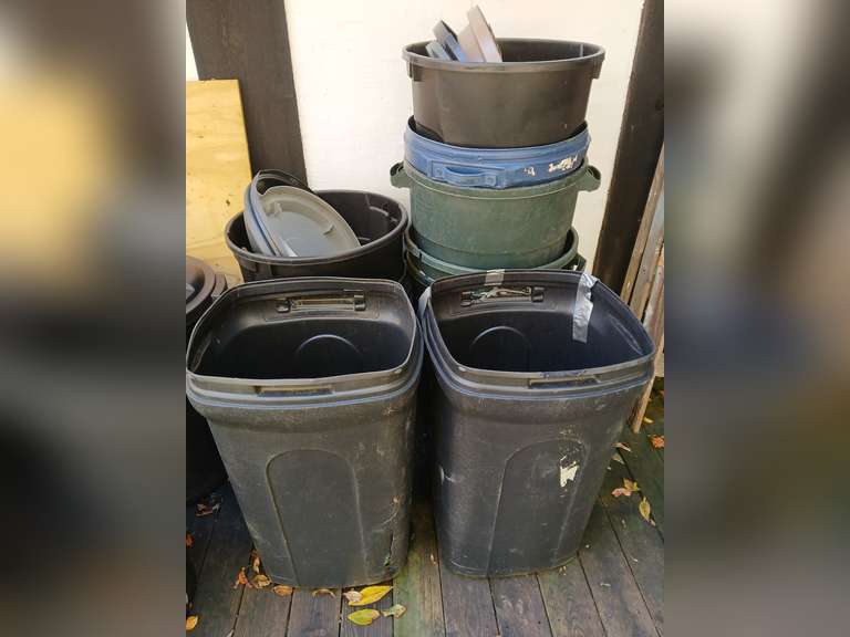 LOT 412 - Large assortment of wastebins, some rubbermaid. Comes with misc.lids