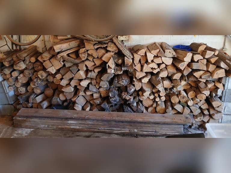 LOT 416 - Large group of seasoned fire wood in garage. Easy removal