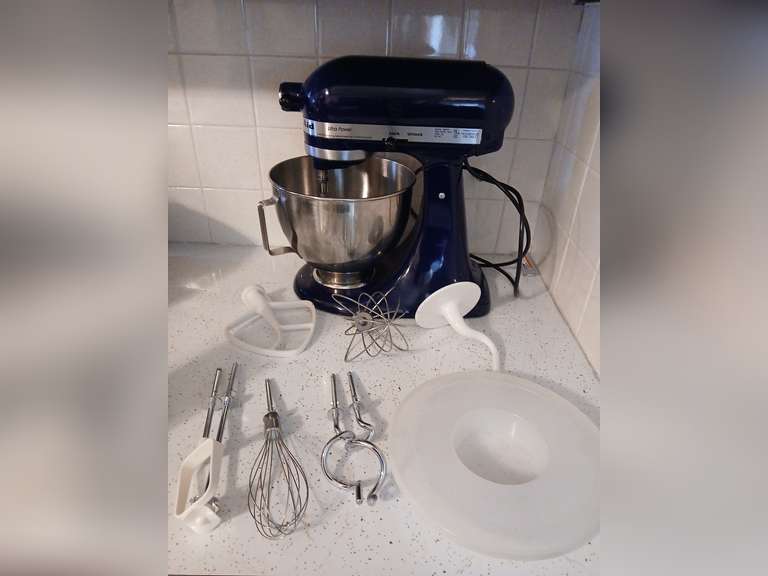 LOT 33 - Kitchen Aid Ultra Power mixer with whip, wisk and dough hook, bowl cover. Clean condition