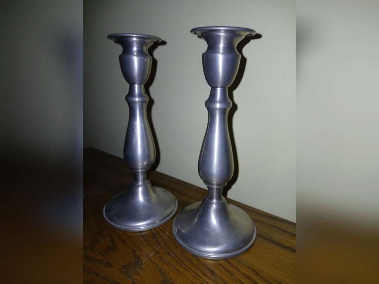 LOT 42 - Pair Reed & Barton weighted pewter candlesticks, 8" H