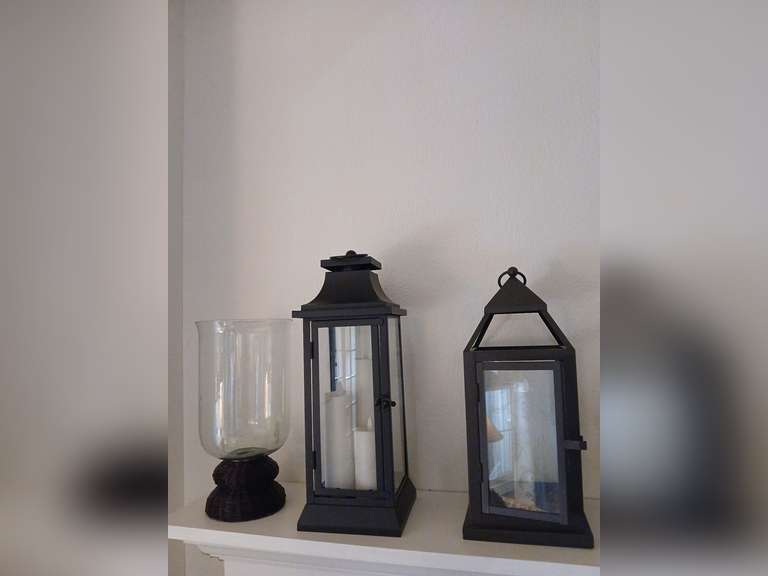 LOT 34 - Pair 16" candle lanterns and pair Hurricane shade vases