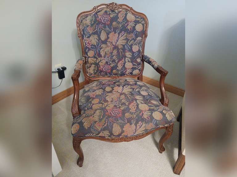 LOT 66 - Queen Anne-style armchair with a floral upholstered fabric and carved wooden frame