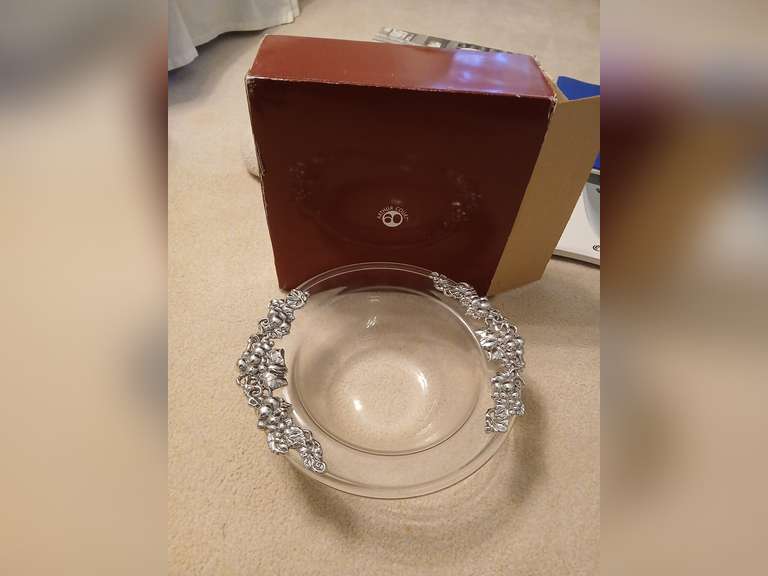 LOT 67 - Authur Court Design phoenix display bowl with grape handles, 15" round. With original box