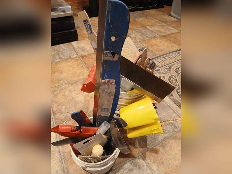 LOT 87 - Painters tools and supplies, scrapers, mixers