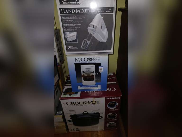LOT 47 - Crock Pot, Mr Coffee 4 cup, Kenmore hand mixer