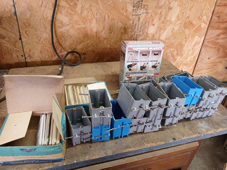 LOT 120 - Sawhorse brackets and assorted electrical boxes
