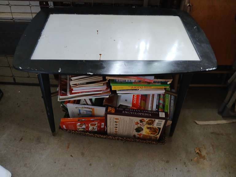 LOT 131 - Student desk with assorted cookbooks and magazines