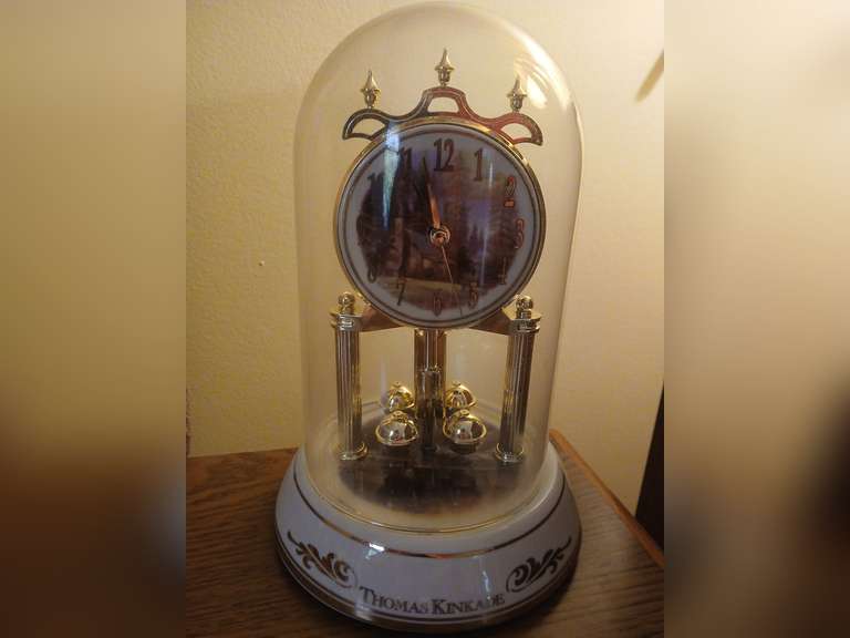 LOT 72 - Thomas Kinkade pendulum battery operated clock. 10"H