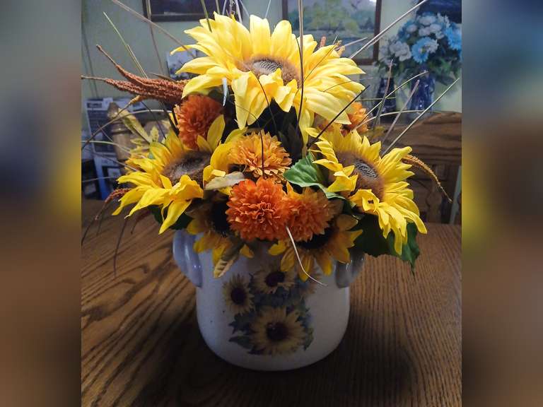 LOT 49 - Sunflower floral decorative vase, 12" H