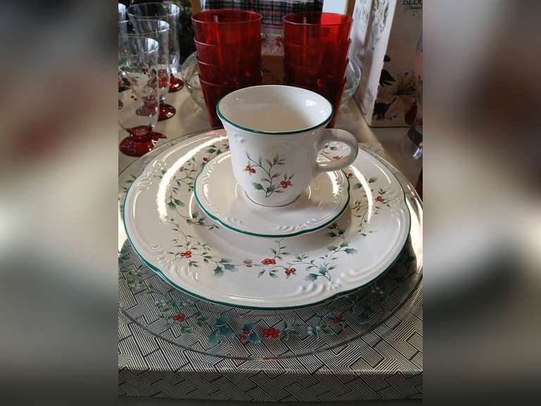 LOT 177 - Pfaltzgraff Winterbeery holiday dishware with serving pieces, glasses, platters and bowls