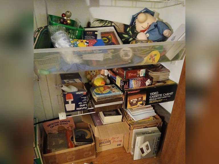 LOT 84 - Ziggy plush, Christmas decor, child's books, video cassette cabinet