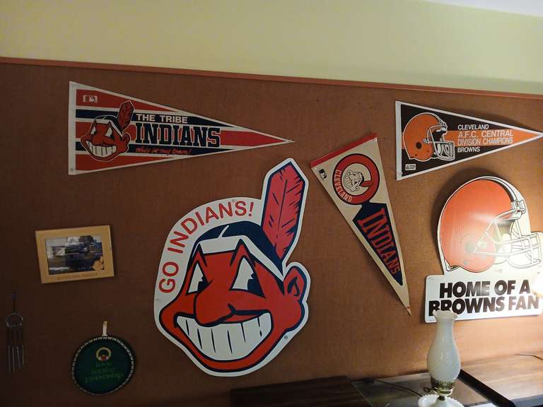 LOT 79 - Cleveland Indians & Cleveland Browns Pendants and assortment of sports magazines