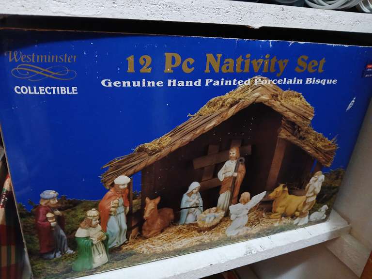 LOT 90 - Westminster 12pc Nativity set in original box and assorted christmas ornaments