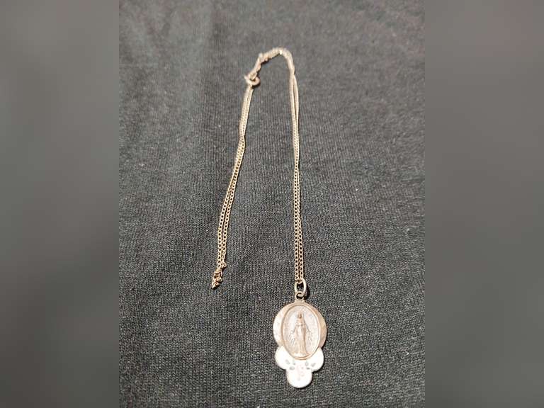 LOT 282 - Vintage Sterling Silver Miraculous Medal On 8" Chain Necklace