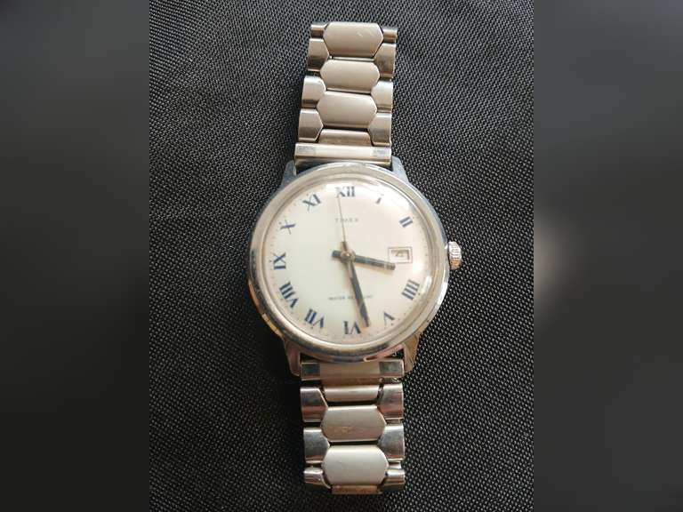 Lot 13:Vintage Timex Marlin Date Circa 1974 Roman Numeral Dial SS Manual Wind Mens Watch